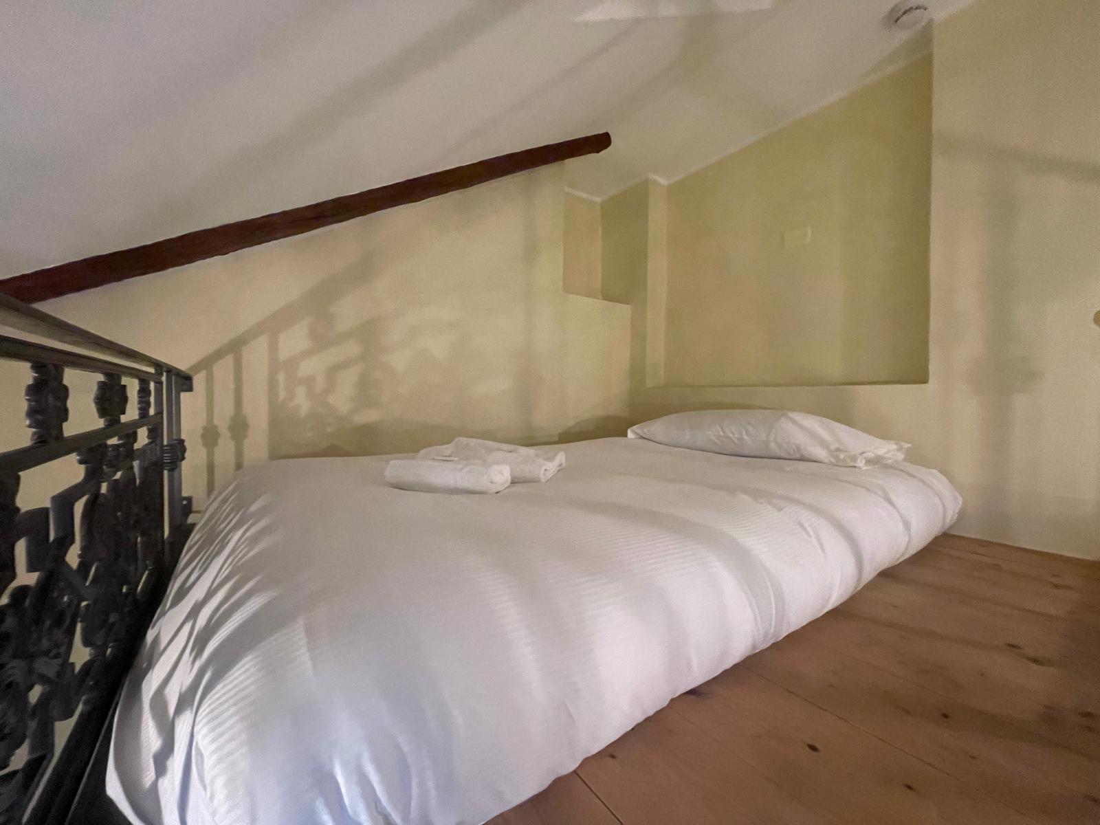- 1 camera matrimoniale con bagno ensuite + soppalco con futon giapponese singolo a terra dimensione 120cm